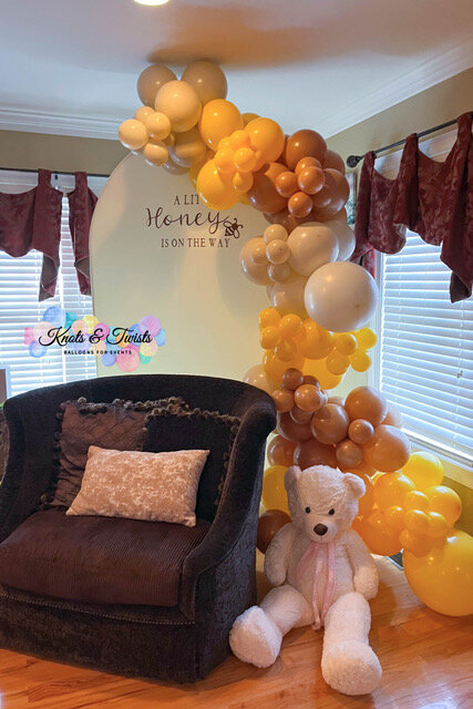 Balloons for a baby shower add a joyful and whimsical touch to the celebration, creating a warm and festive atmosphere for guests to enjoy. Soft pastels are often used to match the theme, while custom balloon arrangements can include adorable add ons to tie in to your theme. Whether it’s a beautiful balloon arch at the entrance, a floating bouquet above the gift table, or personalized balloons spelling out the baby’s name, these decorations help set the tone for a memorable and heartwarming event welcoming the new arrival. We are happy to customize the shower just the way you envision it!